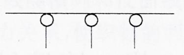 2、集圈:織針沒(méi)有升到最高點(diǎn),只升高到中間位置,舊線圈沒(méi)有退出針鉤就有新紗線墊在針鉤內(nèi),使針鉤中有兩根紗線或兩根以上紗線,一直到正常退圈時(shí)一起退下。表示見(jiàn)下圖