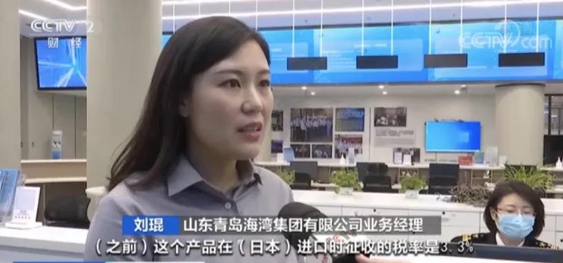 山東青島海灣集團(tuán)有限公司業(yè)務(wù)經(jīng)理 劉琨:之前產(chǎn)品在日本進(jìn)口時(shí)征收的稅率是3.3%,RCEP生效后,它的關(guān)稅就變成了3%。這個(gè)產(chǎn)品關(guān)稅在后續(xù)的RCEP實(shí)施過程中會(huì)逐年降為0。所以綜合測(cè)算下來,第一年我們對(duì)日本出口能夠享受的關(guān)稅減免是100萬元左右。